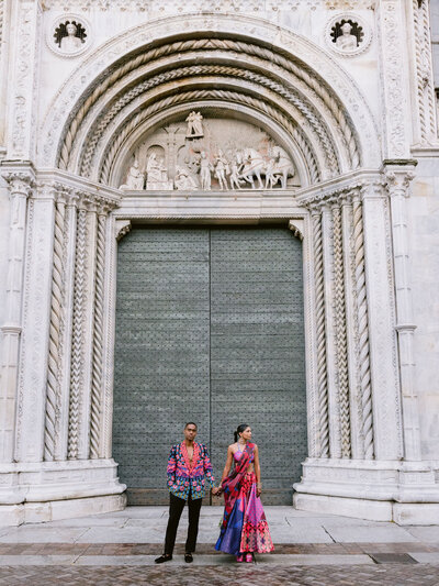 On June 3, 2023, the abridged Hindu ceremony—traditional ones are four hours long—followed under a beautifully decorated mandap with a view of Lake Como behind the couple. “We ended up having to move our ceremony location to the loggia due to potential rain, and it was better than we could have imagined!” Manali notes.